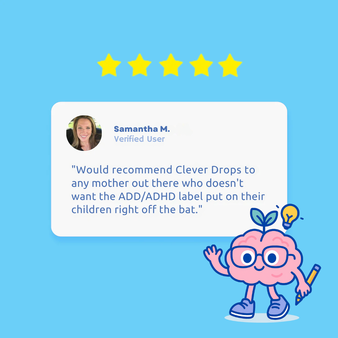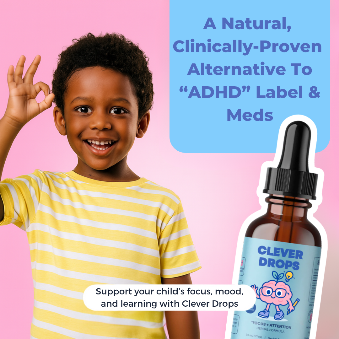 Clever Drops is a gentle, natural way to support focus and calm, without sugar, stimulants, or jumping to a diagnosis. Perfect for kids who are bright, energetic, and just need a little help staying balanced.